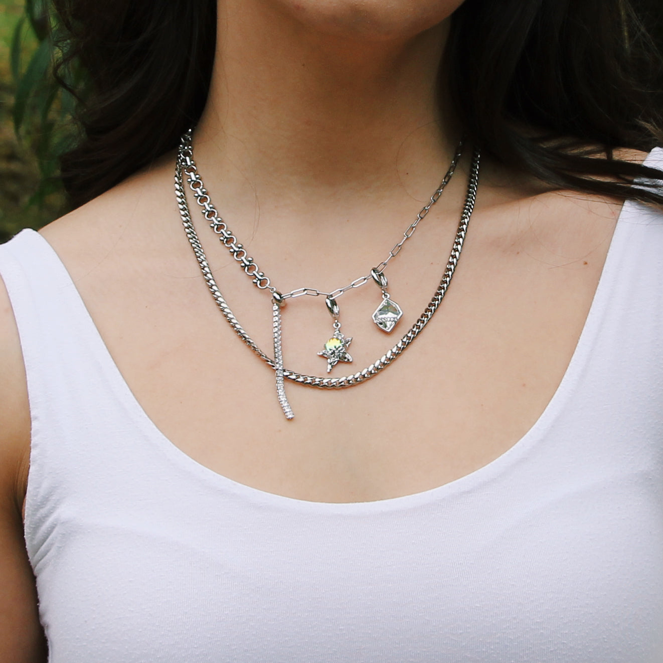 ♡2 Ways of styling. Charms can be removed from the chain and worn as earrings.